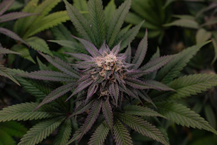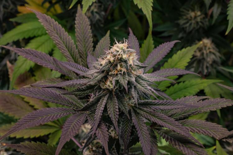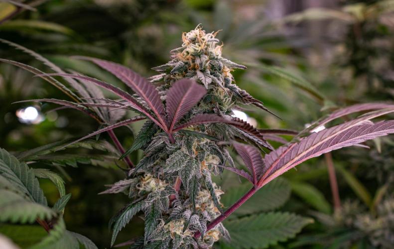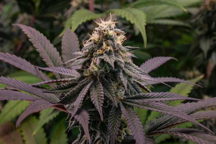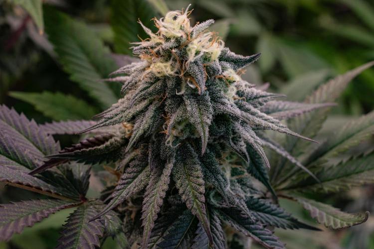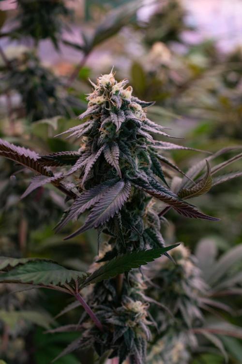 🔸Leaves are looking strong and healthy – deep green with some subtle purple hues showing on the edges. No clawing, no deficiencies, and no signs of overfeeding, maybe she could use a little more nutrition.. Sugar leaves are already coated with trichomes, which is always a good sign that the plant is cruising in the right direction.