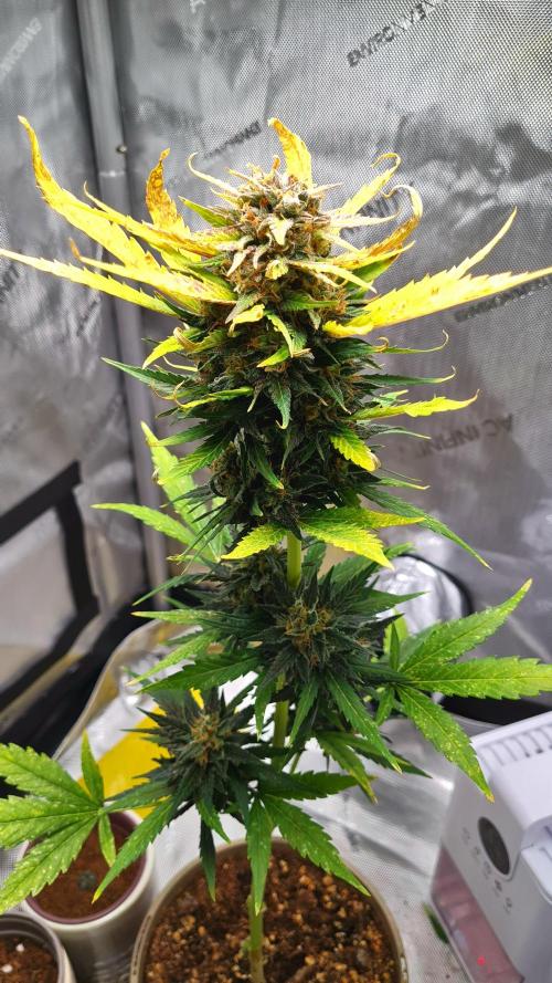My Blueberry gals doing ok but has lost a couple more fan leaves this week, the plan is just to maintain her environment as best i can till harvest. Shes definitely getting there should be enough green left on her to bring her to full fruiting.