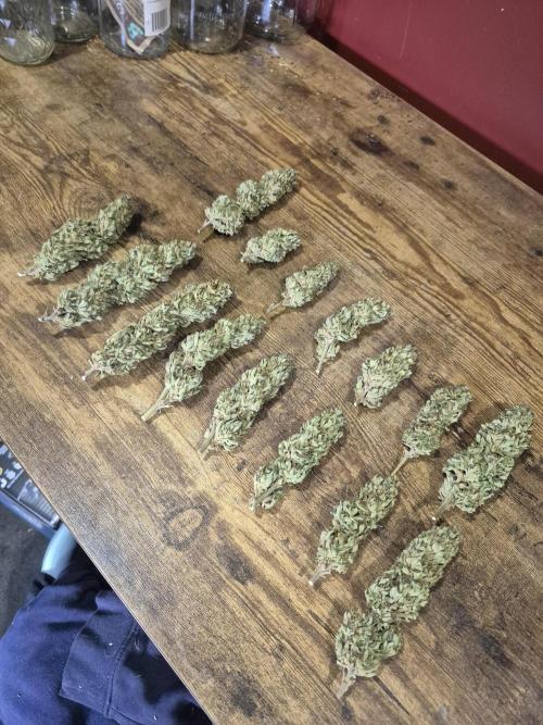 Bdog7878 I really wanted to let it go another 5 to 7 days but I have been having some bud rot issues the buds are so dense and thick they just hold moisture. I'm expecting rain 4 days in a row so I decided to harvest the mop#1. Even though I've built a cover for the plants when it rains the dampness and high humidity would have caused another outbreak of rot. It was ready enough. The mop #2 im gonna try to get 7 to 10 more days its will update at harvest. The buds smell great look great are heavey and dense and we're covered in trics. This was my first full grow so I don't have much to compare it to but it came out great im super happy with it will also update in a month or so after the cure. Did not weigh it wet will update with dry weight. The plant flowered for 58 days wish I could have gotten another week but the weather wasn't having it.