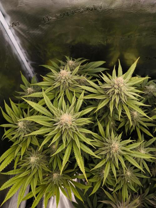 DRXXI_GER 29.09.2025 Pineapple Express, Tag 72 seit Keimung, Blütetag 22. Die Buds werden dichter, immer mehr Harz sichtbar. Stretch vorbei, jetzt geht’s ums Ausbilden der Blüten. ___ Pineapple Express, day 72 from seed, day 22 of flower. Buds are getting denser with more resin showing. Stretch is done, now it’s all about developing the flowers.