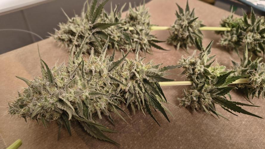 A very compact and dense strain, taking topping and training well. I would even guess, that you need to train this one for proper air flow and light penetration. It's frost and sticky, the buds are dense. The only complain I have is that the buds could be a little bigger.