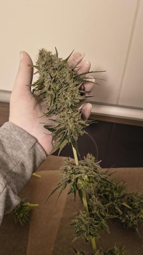 What a strain - the biggest buds I ever got on my short growing journey. It's sticky and smelly and dense and big. Really makes me happy :D The only downside, as far as I'm concerned, is that the plant stretched quite a bit. I'm really glad that I did top it.