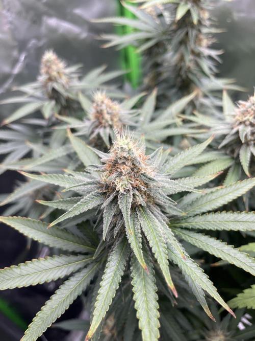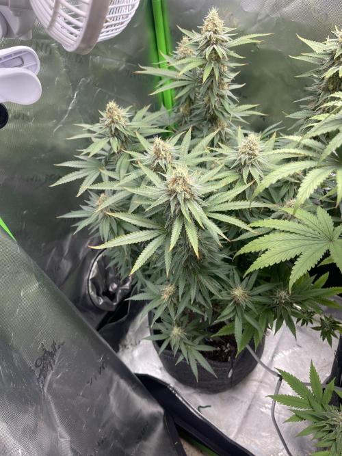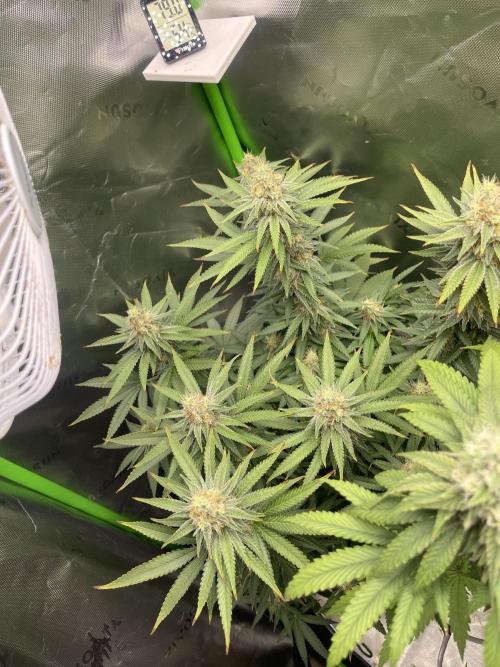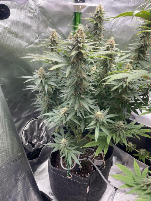 GingerGarageGrow420 Strain: Chill Out OG F4 Day 21 of Flower Day: 70 from sprout Medium: Fox Farm Ocean Forest Light: Vivosun VS2000 at 75% VPD: 1.3 kPa Light Distance: 12 inches Watering: By hand, ~18 oz daily Nutrients: pH Perfect Advanced Nutrition Grow, Bloom, Micro 2 ml / L, 1 ml / L big bud Pistols and terps looking great