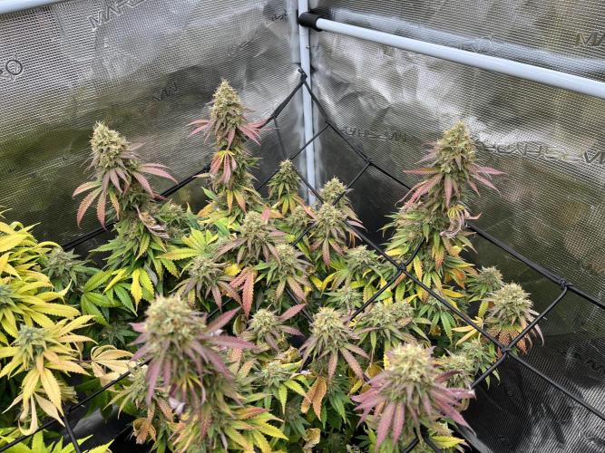 DibbyDab LST with the trellis net, and doing some pinching of the stems gently bending the branches downward and even the canopy.