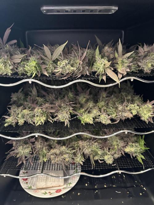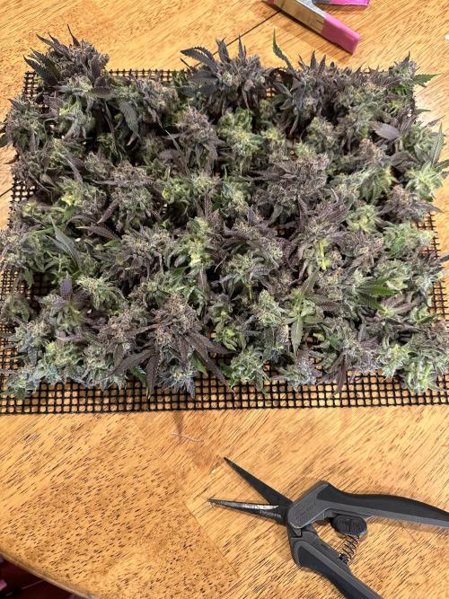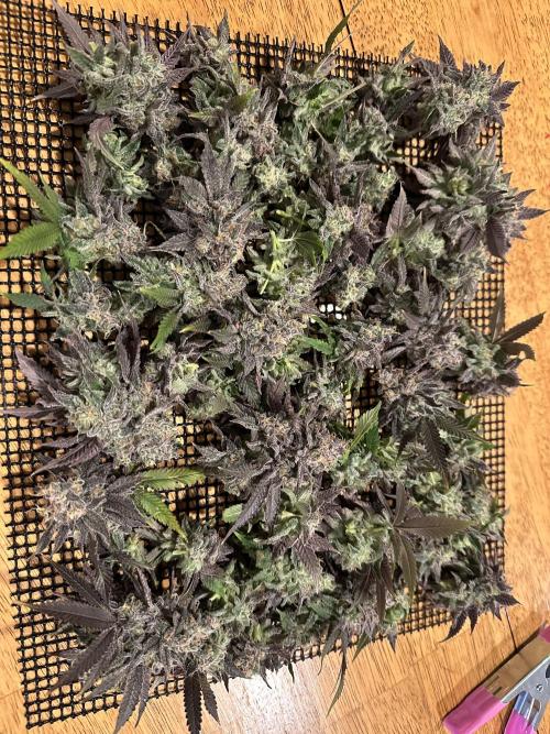 heis0070 She just needed another day to finish filling out. Chopped, bucked the buds from the stem, and got everything loaded into my homemade drying fridge. I plan to dry for about two weeks and check on the progress then. Once buds are dry I’ll give them a dry trim and start the cure.