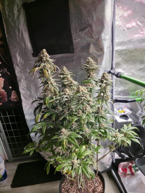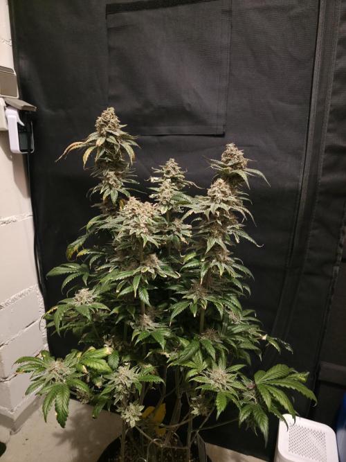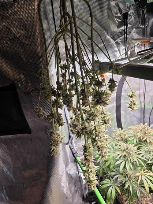 @420Germany, haha Danke, is wirklich ne feine, man muss aber glaube wenn man trainiert eher richtung mainlining und HST gehen, mit LST reißt die die Stäbe nach paar tagen wieder aus der Erde 🤣💪 echt starkes Wuchsbild und sehr robuste Seitentriebe. Aber bin nicht ganz so zufrieden leider, die Buds oben sind schön dick aber unten die bekommen kaum Licht weil sie so eng gewachsen ist 😅. Naja Ausbeute hier wird etwas geringer aber dafür riecht sie super und ist extrem Harzig, auch bei den kleinen Buds unten. Nächste Runde kommt die Limited Edition von Zami X Tical, hoffentlich performt die ähnlich gut.