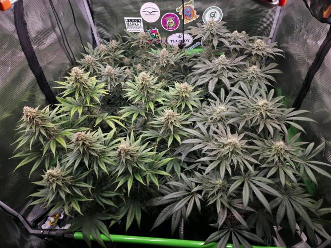 McBubatz 11. Woche, Pinky is absolut on 🔥, sehr schöne dicke und große Buds, Blätter sehen gesund aus und der Duft schön Fruchtig/Erdig stark in Richtung Gelato. Die letzten Wochen werden die Fotos im Zelt gemacht da die rauszuholen mittlerweile ganz schön arbeiten is 😅.