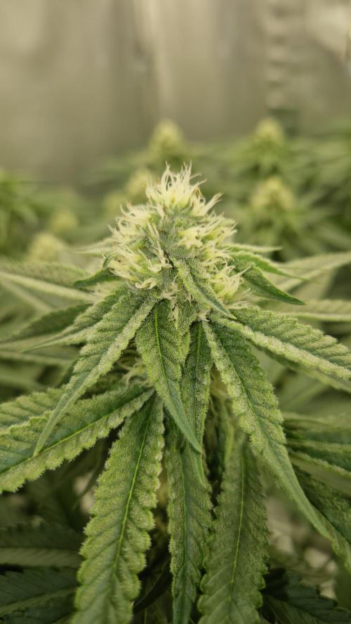 * Zustand der Pflanze: Kräftiger Blütestretch, erste Blütenstände sichtbar.
