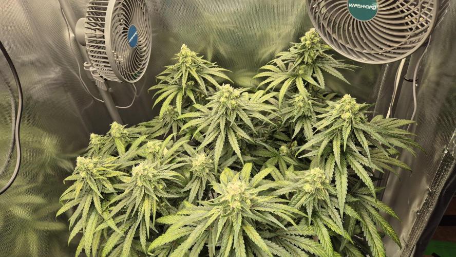 * Wichtige Ereignisse: Wechsel des Lichtzyklus. Reduzierung des DLI. LST um die Pflanzen auf gleicher Höhe zu halten