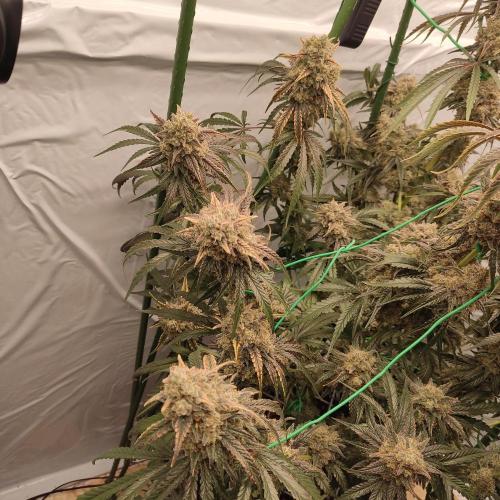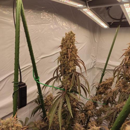 23_GG_GROW Sehr nervig, die will nicht aufhören Zuwachsen. Hat nun schon die eigentliche viel größere Sativa GTH überholt und sie hat noch keine Buds..das wird echt nen Busch. Lampen Upgrade: 3x Mars Hydro FC 1500 EVO nun am hängen. Auf 80% über Spiderfarmer steuerung gedimmt. Jetzt sind echt überall 1000 ppfd am Anliegen,Mitte bis 1400 Hoch.