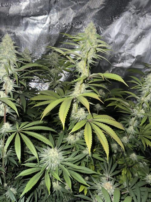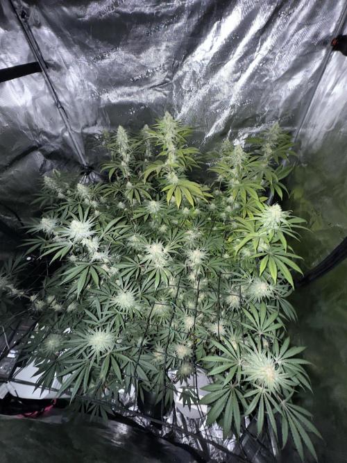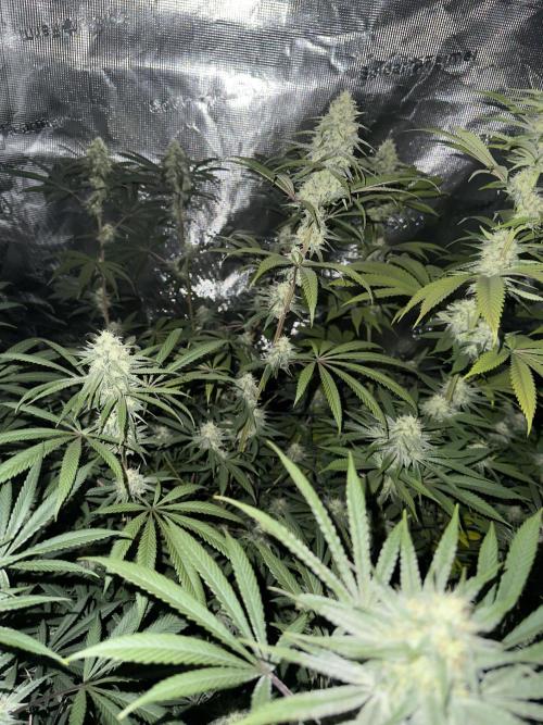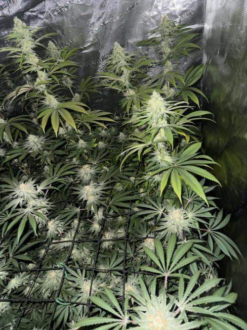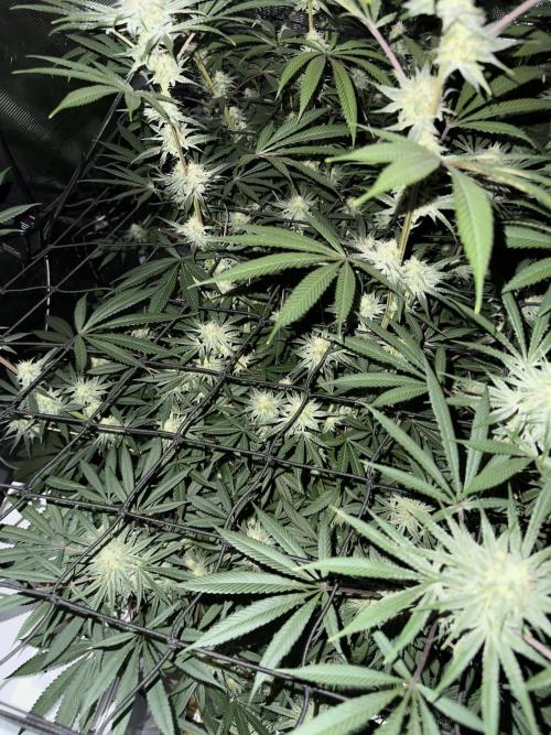 S3phwea Plants look happy. I'll top dress with bloom nutrients and add some molasses for extra sugars this weekend. At this point I can't reach the back of the tent, so the defoliation they've had is all they'll be getting. After winter I'm planning on rebuilding the "lung room" around the tent so I can access all sides, I can see how that would be advantageous. For now, I should be able to carefully dust in my top dresses and run the feed line from my resevoir with the pump setup to reach the back two plants easily enough. I didn’t realize how tricky they’d be to manage at this size.