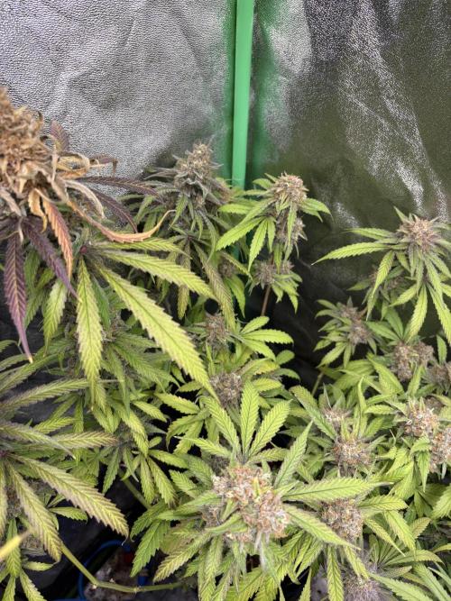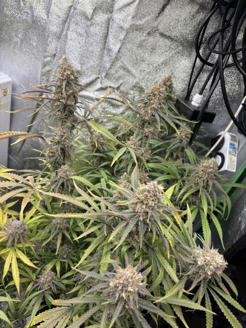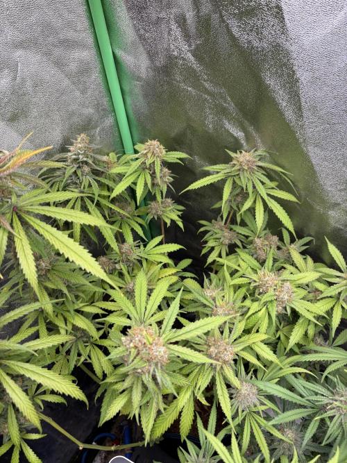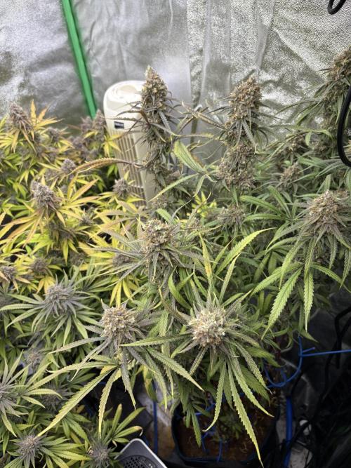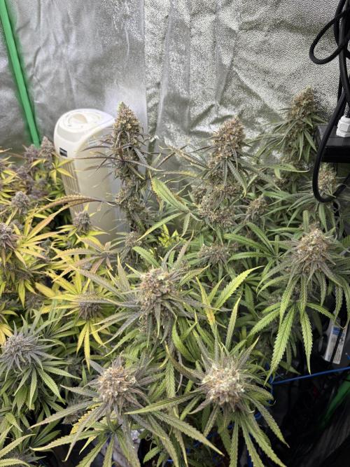SelfCultivationGrower Last week of flower. Next time I Update this diarie will be harvest. Super frosty and skunky smelling buds. Not as big as other Skunk grows. But this freak of nature has 12-16 main Colas and a super weird HST before flipping to flower. So I think I can say a good result.