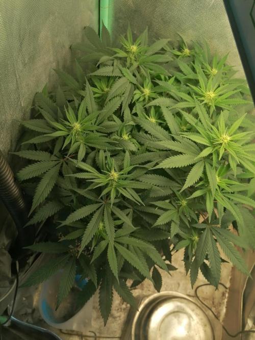 BigBerias She is growing amazingly, no deficiencies or stunted growth. The flowers are developing nice and on scedule, I can't wait to see how the flowers will develop. I haven't found any pictures of what these flowers can look like, but we will see! She's drinking a lot, I give her 2 liters every 3-4 days. I will do a last defoliation soon, those pictures will be included in the next update