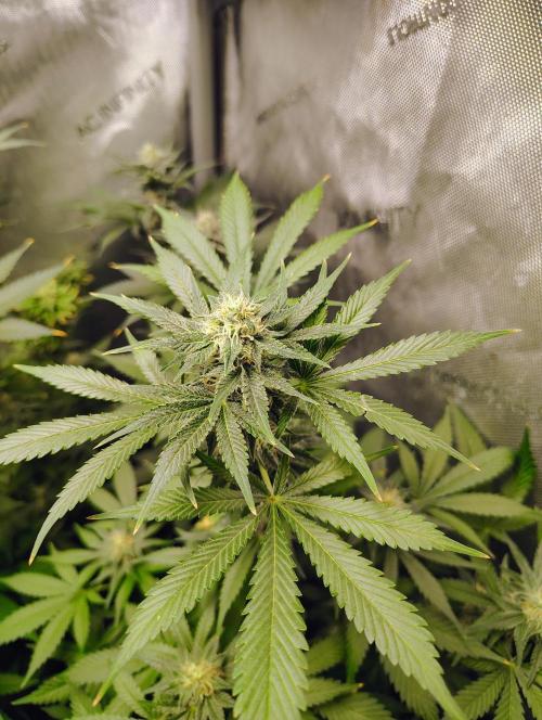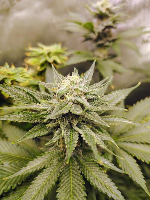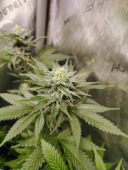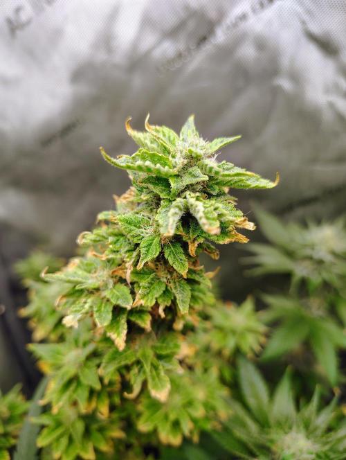 JolliGrowz27 Gave them all 2 tbsp of Age Old Organics Bloom 5-10-5, 1.5 tbsp of Age Old Organics Fish+Seaweed 3-3-2 , and a double dose of Recharge. This was Saturday Sept. 27. I woke up on Tuesday to Pheno #1 with burned tips on the newer growth. It started top going down, so I immediately took her outside and flushed twice. I should have flushed a little more it burned a little more, but it has stopped now. I'm sure I got lockout from that toxicity. Pheno #2, and Pheno #3 are not burned. Took the feeding well. I also have 2 other plants in my tent, both crosses I created and testing of a Baby Yoda female with a Red Zkittlez male. They are F1s. I like Pheno #3, she is a heavy feeder, can take a beating, and the frostiest. I broke her in half while in Veg. I was replacing my carbon filter and accidentally dropped it. I quickly put the broken half in water and started a clone to save her. Happy I had the cloner set up already. I've got clones of all 3, gonna run it again and next time I will have lighter feeds, cut back the 2 tbsp per gallon to just 1 tbsp. So just water for the week and maybe Recharge toward the end of week 4.