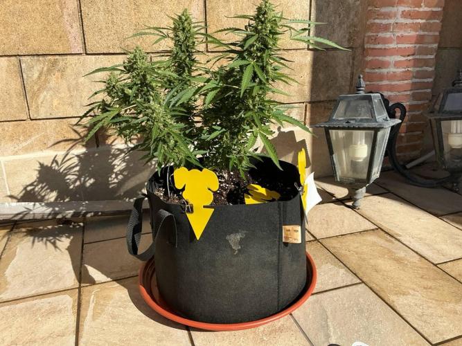 seth 😋 Welcome to ur new home baby! Moved from 1L avg pot to 19L pot (final home). Transplanted when i saw leaves going over pot border. The timing is almost perfect seeing roots and wet soil level.💪 👉20L Light mix BioBizz + dogma supersoil.👈 Watering with 1L at 180ppm avg. Temps around 27max and 20min.😎 [between pot and saucer i put something like a support grid in order to let air flow from the bottom too] Started serious LST. I think stem was too stretched and it let me low space to move but we will handle it in some way.