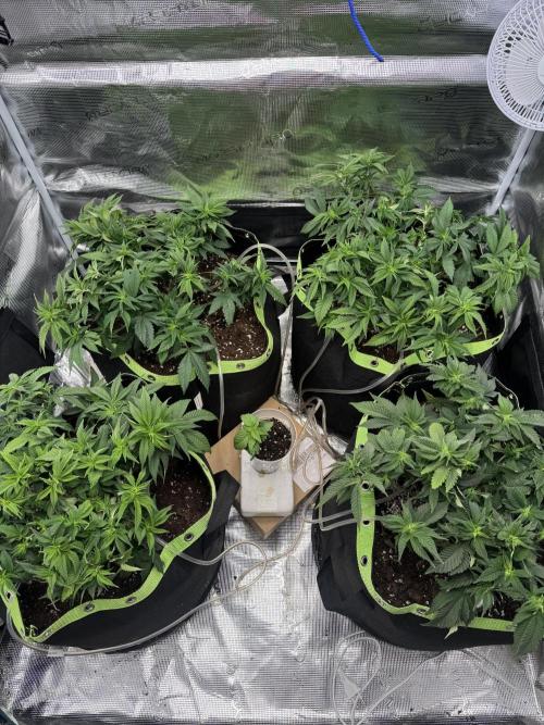WeedForceOne Week number 4 after transplanting those clones. They are going bushy! Removing gradually inside nodes as well as every under pointing shoots. Iam gonna top them next week. And a lil update. Built next tiny grow tent for the Mother plant. I would like to try her in it. 50x50x80cm.