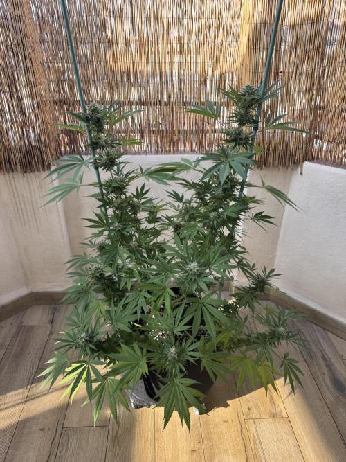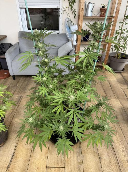 NidoR420 The eighth week might be pre-flowering! I’m starting to notice some pistils. The two other plants are actually doing much better than at the start, even though I’m not showing them yet :). One of them has leaves with 13 and 11 leaflets, while the other has some with 11. They’re stretching and not topped, so they’re really growing vertically. Overall, this is a challenging week from a weather perspective. There’s not much sun, and it’s really heavy wind. I supported the three plants as best I could, but they still bend a lot on some gusts of wind. Turns out, this week wasn’t preflower :) quite happy as I know she’ll be able to make it until at least mid October, her 2 sisters are entering in preflower though :) I’ll be away for a few days and was able to water just before, they should be alright. I fed her with a balanced mix (8/6/8) as the run off came back under 500ppm, PH was perfect at 6.3 though