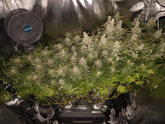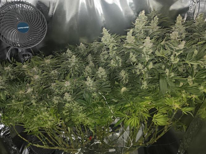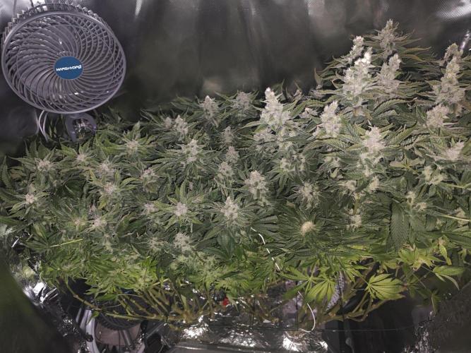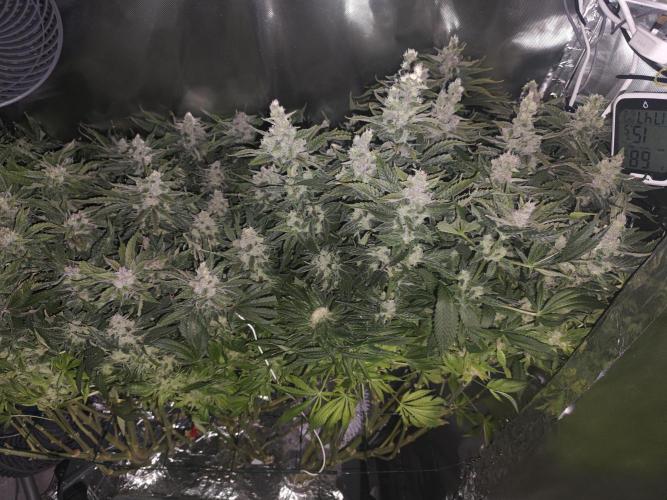 however much vertical growth you got in the last week, i'd expect at least that much before vege growth ceases. That can help decide where to draw that invisible line as far as where to lollipop. Because of how shielded lower areas are, may want a shorter depth of buds... could leave a bit more on some branches to compare your choices after harvest. Verify if your guessimate of the "larf level and below" was good or not. (branches in high-intensity light areas might get a little deeper with good buds - i.e. corners vs central area are going to have some differences)