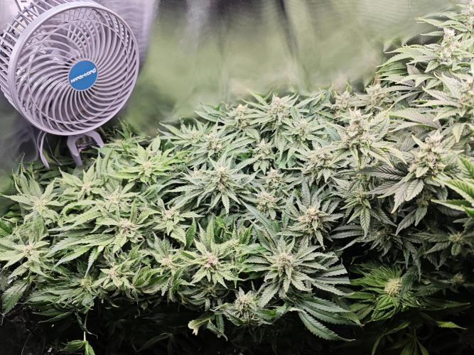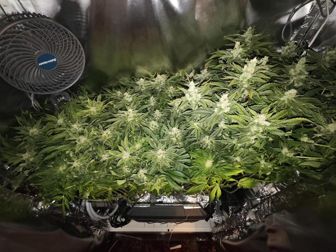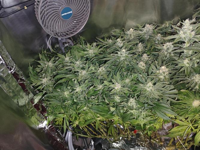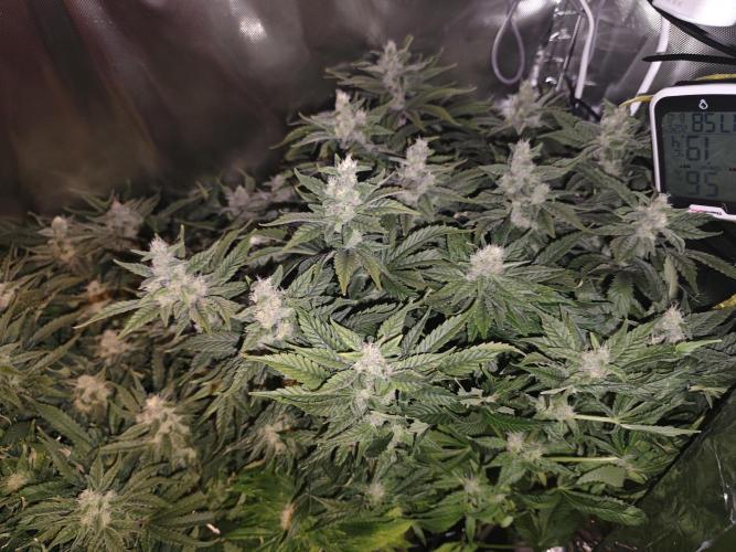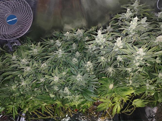 however much vertical growth you got in the last week, i'd expect at least that much before vege growth ceases. That can help decide where to draw that invisible line as far as where to lollipop. Because of how shielded lower areas are, may want a shorter depth of buds... could leave a bit more on some branches to compare your choices after harvest. Verify if your guessimate of the "larf level and below" was good or not. (branches in high-intensity light areas might get a little deeper with good buds - i.e. corners vs central area are going to have some differences)