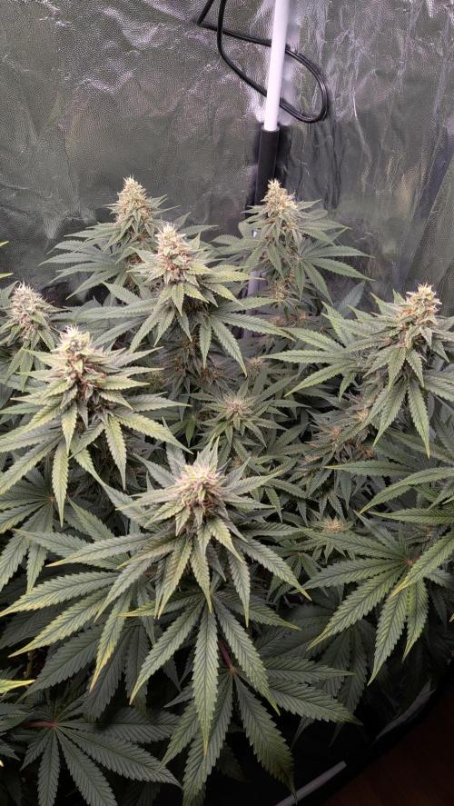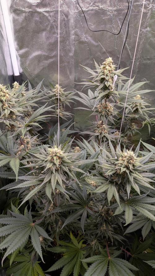 Z&Z: just a Freak, frosty, smells like lightly rotten tropical Fruit and has the most crazy growing structure i have ever seen. I mean literal side Branches splitting and growing as 2, some natural Topping i guess.. but more Budsites for me :)