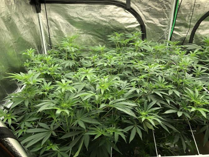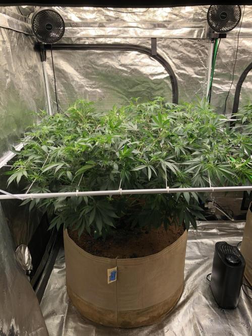 MindFlowers68 The daytime temps are up from 78 to 84 now that I am done drying my last autos. She's a little unhappy this week due to a little wind stress along with slightly overwatering and one of the days my humidifier dried up without me realizing. I got her some compost tea and top the humidifier off and she is bounce back pretty much just dandy. I have plenty a height and the 2 x 2 section of my Cool Grows tent but laterally the plants just need more space. They never really had enough airflow from the get-go so I'm gonna try to set up a 3 x 3 for them this week maybe. I am also going to think about tapping the plants too.