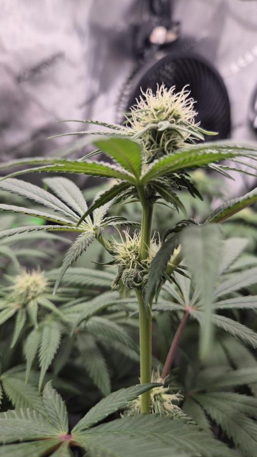 The plants are stretching nicely and everything looks on track. I’m still doing quite a bit of defoliation — removing large leaves for better airflow, and also cutting away some small branches that clearly won’t make it to the canopy.