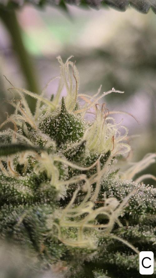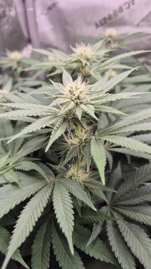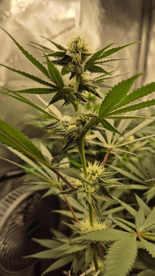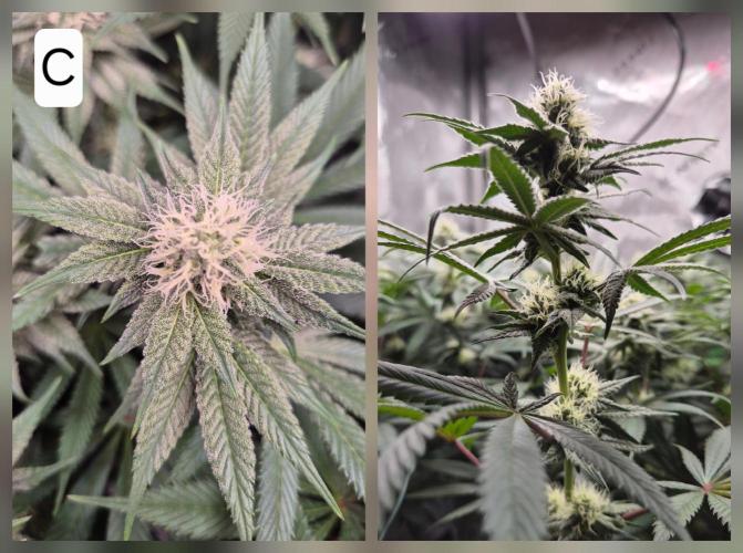 HillNSage This week I watered three times: first with the regular feeding, then a half dose, and finally just plain water. They did get a bit too dry once while I was away for the weekend. Plants B and C are starting to show some brown pistils already. Humidity has been staying really high all the time — that’s going to be a real issue soon. I’ve decided to buy a dehumidifier to keep things under control.