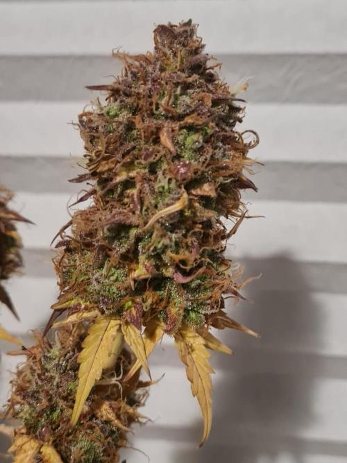 CeeJayy420 She’s fully embraced autumn now—beautiful fall colors spreading across the canopy, giving her a rich, seasonal look. Harvest seems about two weeks away, judging by overall maturity. Buds are swelling nicely, but sugar leaves are still holding back a bit, not yet showing the full frost I’d expect at this stage. It’s a slow but steady finish, and I’m curious to see how she expresses herself in these final days.