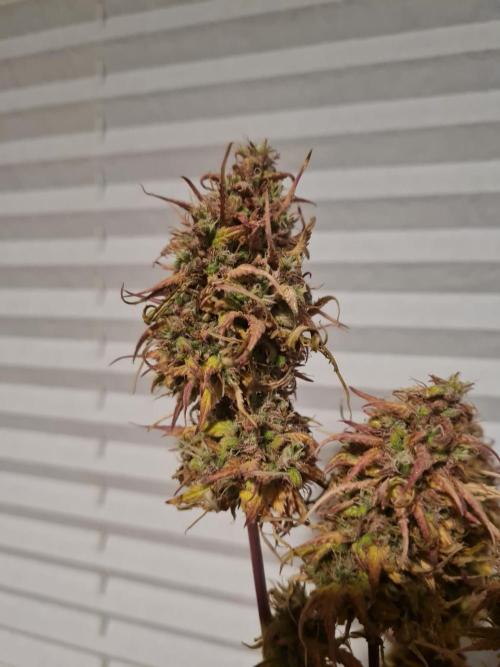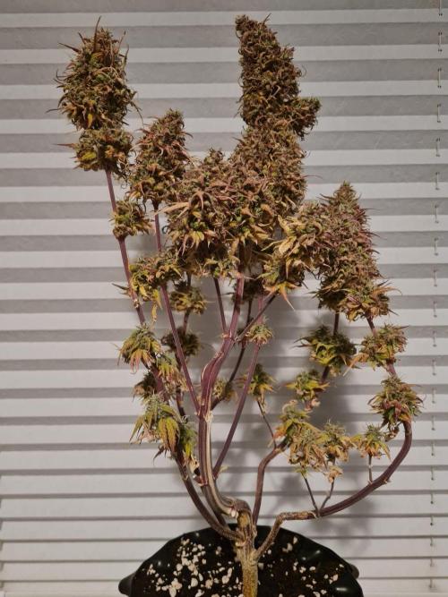 CeeJayy420 The plant is doing well and shows clear signs of advancement toward the end of the week. Frostiness and trichome production have increased noticeably, and the buds are becoming denser and thicker. The foliage has transitioned into a soft pastel purple, giving the canopy a vibrant and healthy appearance. These developments suggest that the plant is entering its final ripening phase with good momentum. Continued monitoring will help determine the optimal harvest window.