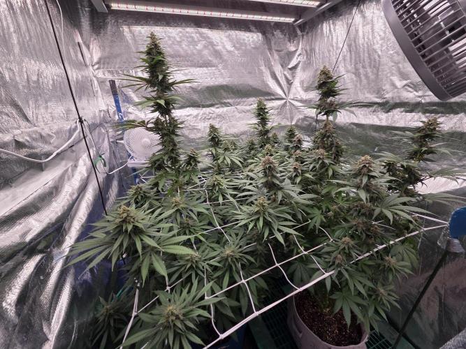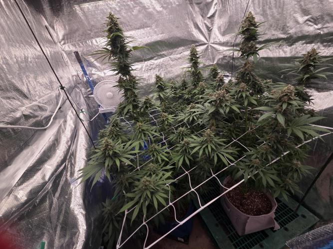 TooMuchTIm Mid week 6 of flowering.. Been getting some really hot days and nights which is speeding up the maturing rate. Am deep in orange pistils and just starting to show amber trichromes.. Bit early, but am pretty sure the heat is to blame.. Very late to the scrog net party, but the girls were swaying in the breeze and i was worried about their weight.. Not the worst of problems to have.. Going to give them another week and then start the flush.. Happy grows, all!