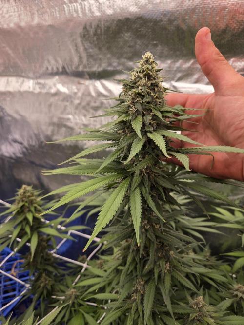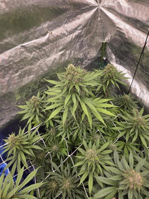 TooMuchTIm Week 7 flowering, Had some confusion with heat and semi started the flush only for the rain to come for a few days and drop the temp into mid 20's. Seems i may have been a bit eager.. Going to give them another feed this week and then start flush mid next week. They look & smell amazing. 3 very distinctly different smells though. But they're all getting sticky and covered in rez, so no complaints. Happy grows, everyone!