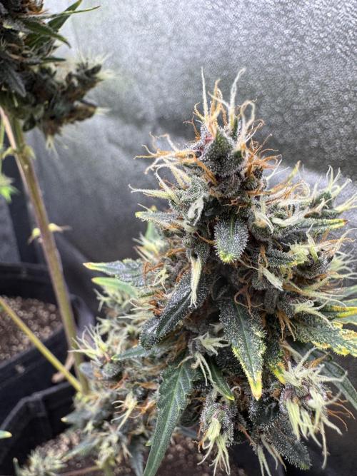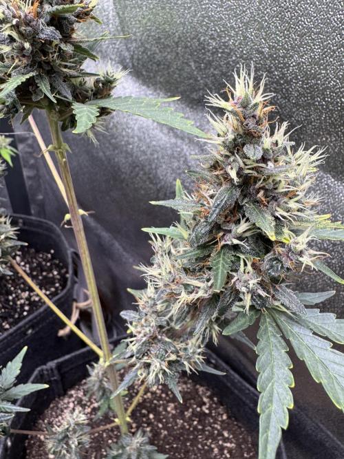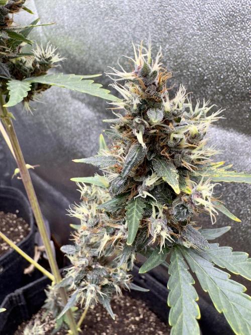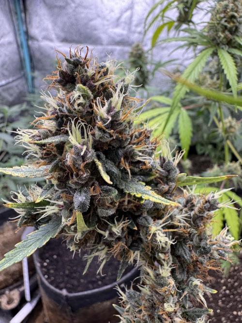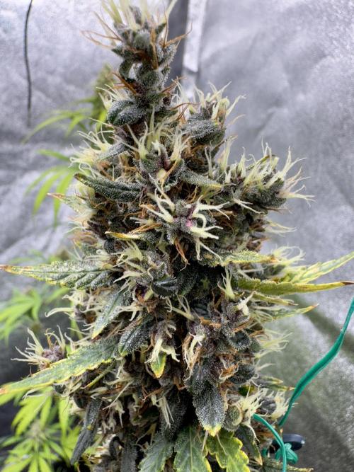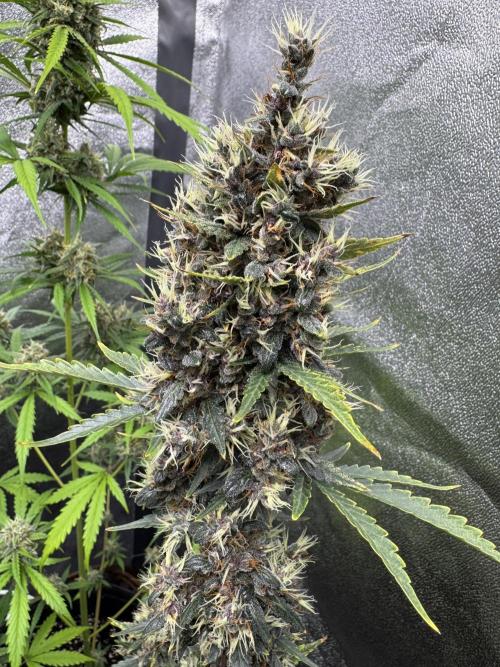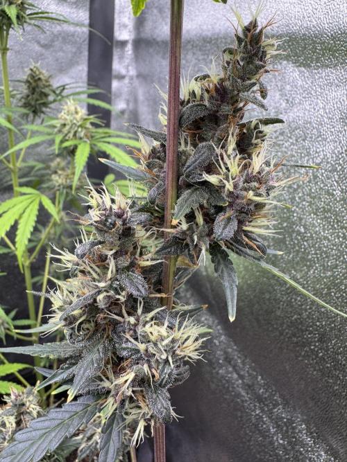In cultivation, the new hybrid has been found sturdy and flexible, which allowed it to flourish with equal strength in grow rooms (soil or non-soil) and outdoor plantations, green houses. Vegetating Auto Purple Opium plants need at least 16 litres’ space to develop a broad root system, which in future provides for a thick stem and branches. The beginning of bloom is marked with 1-2 weeks’ surge of growth, after which plants reach their final height and begin to multiply calyxes. At this stage the odor is clearly noticeable, and in 5 weeks, when every bush looks like cotton candy with its huge aromatic buds growing in dense clusters, the stench becomes unbearable. No insect parasites normally dare get close to these poisonous beauties! For outdoor plants harvest time is end September.