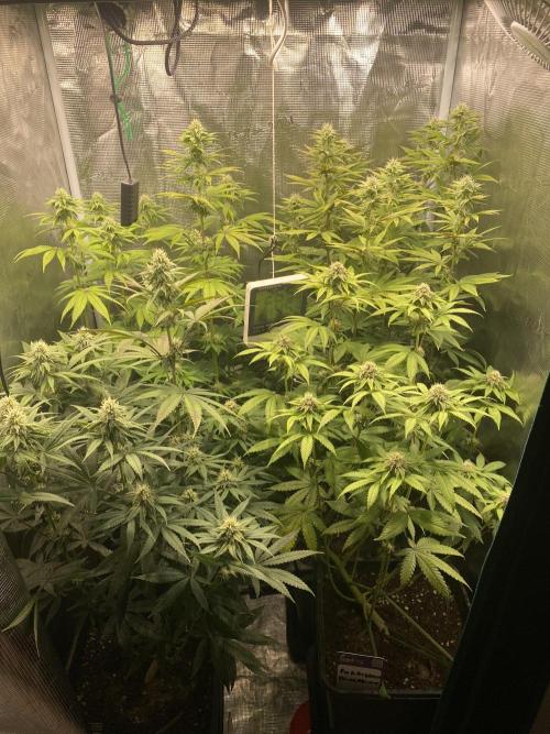 Pennuts On day 40 I sent them into bloom, and today they've completed their first week of flowering. The plants are doing well and have started to stretch. This week, I first gave them zeolite and then compost tea with Dogma products.