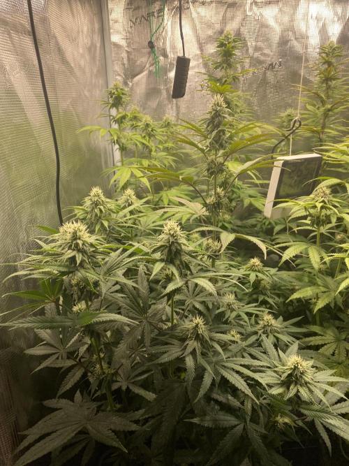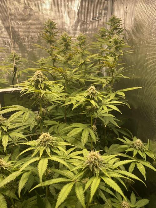 Pennuts This week, the plants have stretched further. I've trimmed the lower part of the plants to focus on the apical buds, and resin production has begun, which seems to be a good start. This week, I fertilized with compost tea, and in the following days, I'll add a little molasses.