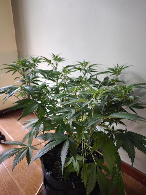 I think I’ve been cursed ahahah 😅 First, I struggled to germinate the seeds for this one (and the others in the tent), and now this week I left an LST wire too tight and snapped the main stem! So yeah… now I’ve got a topped plant with two mains lol. Anyway, she’s still doing well — easy to train and growing nicely despite the setback. Let’s see how this goes! 💚💪🏻