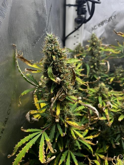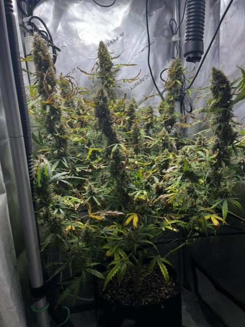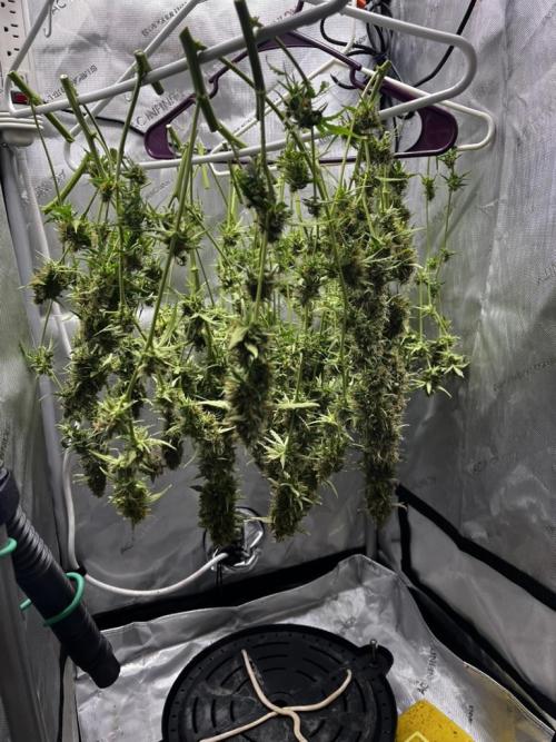 Chopped about a week before I would have liked, but it had to come down today, so I can get it dried and cured before I leave for a long trip. Lots of cloudy trichomes with some amber on the sugar leaves. Should be fine.
