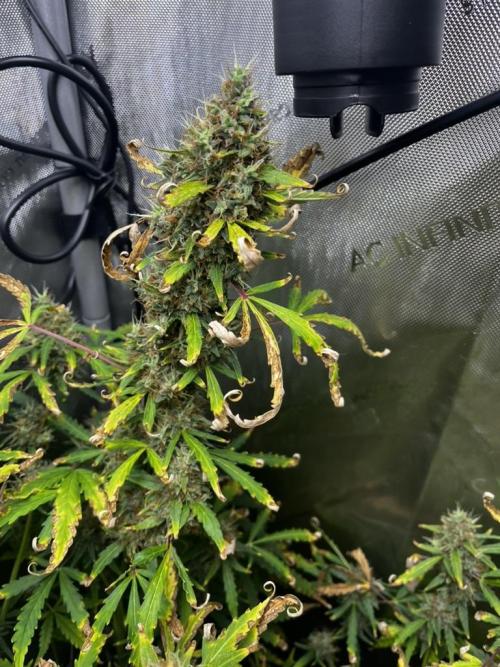 Lots of dead/dying leaves. Normal fade is making it look worse. Buds look good.