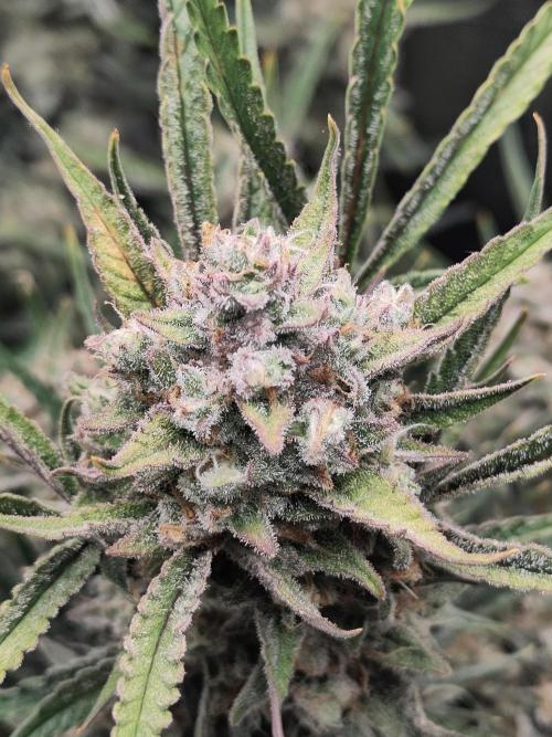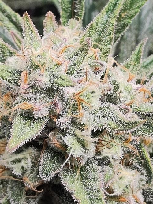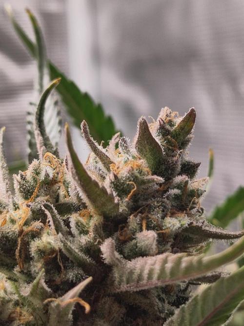 Brandenbluete English below Theoretisch wäre das angegebene Erntefenster heute vorbei aber die Guava Auto braucht noch ein paar Tage. Vorgestern hieß es das erste Mal Trichome checken und während auf den sugar leaves schon die ersten circa 10% bernsteinfarbenen dabei sind ist auf den Buds noch ein guter Teil klar. Ansonsten geht es der Pflanze gut und Gott sei Dank hat dieses Zelt (im Gegensatz zur BbM) keine Spinnenmilben. Das Aroma duftet schon herrlich und ich freue mich auf die Ernte. --------- Technically, the listed harvest window would be over today, but the Guava Auto still needs a few more days. A couple of days ago was the first trichome check — while the sugar leaves already show about 10% amber, a good portion on the buds is still clear. Other than that, the plant is doing great, and thankfully this tent (unlike the BbM) doesn’t have any spider mites. The aroma is already amazing, and I’m really looking forward to harvest time.