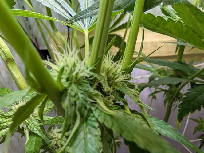 potcommunication the plants stopped stretching . i defoiled a lot as i always wanted to try that, the bud areas are also quite leafy ,,,