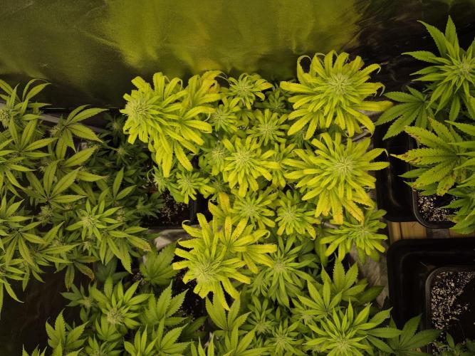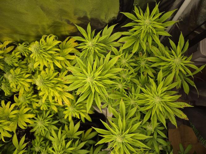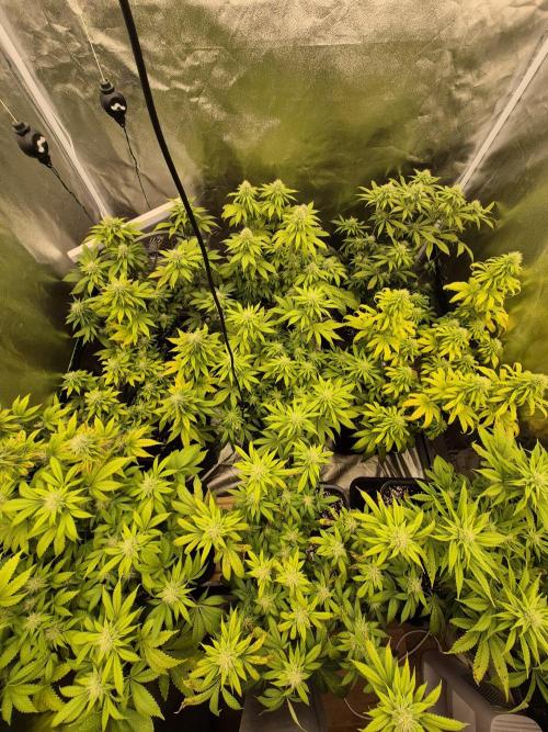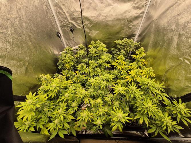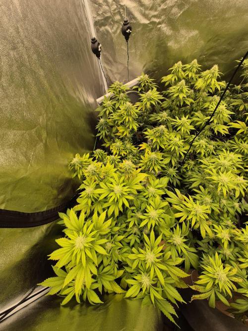 Pblc_10 Hab jetzt n bissl entlaubt eigentlich wollte ich noch ne Woche bis zwei damit warten aber es wurde mir zu buschig also hab ich es vor gezogen und werde nochmal gründlich in der 3. Blütewoche entlauben. Die Lampe macht sich bis jetzt sehr gut ich hab viel stabilere Temperaturen und wenn man das Zelt öffnet ist da keine dicke Wand mehr drin sondern angenehme und keine warme Luft seitdem komm ich nicht mehr über 26°C wenn's wirklich warm ist also hat es sich definitiv gelohnt. Der wuchs gefällt mir sehr gut auch dir FPR wächst prächtig ich hab die vom Kollegen bekommen zum testen bei ihn kam "Unkraut" raus das sah sehr ausgefranst aus umso froher bin ich das meine auch nicht nur im Ansatz ähnelt aber man kann immer mal n krüppel dabei haben und die og kush macht sich auch prächtig besser als ich vermutet hatte ich bin auf die Ernte gespannt wie die Qualität der drei Sorten ausfallen wird.