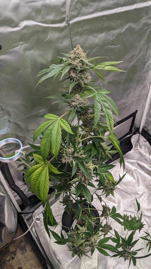 GroloCup Cruising along, life's been busy so updates have gotten sporadic. She's grooving along, nice tight buds with tons of frost and a funky fermented fruitiness is oozing off her. Keeping things the same this week with her parameters, but only filling the buckets about half, I'm dabbling with seeing if the roots will grow and reach for the solution in the bucket, increasing the amount of nutrients she'll uptake during the final half of flower.
