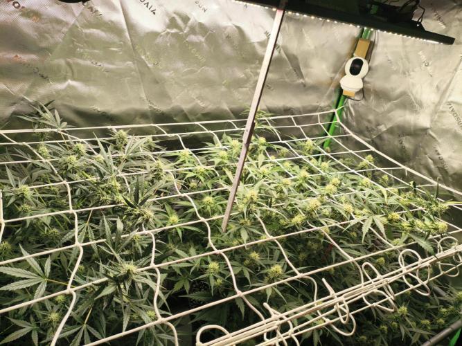 Xaboo some leafs must go. stretch is slowing down not at the end i think. nice smell. have desided to scrog them.