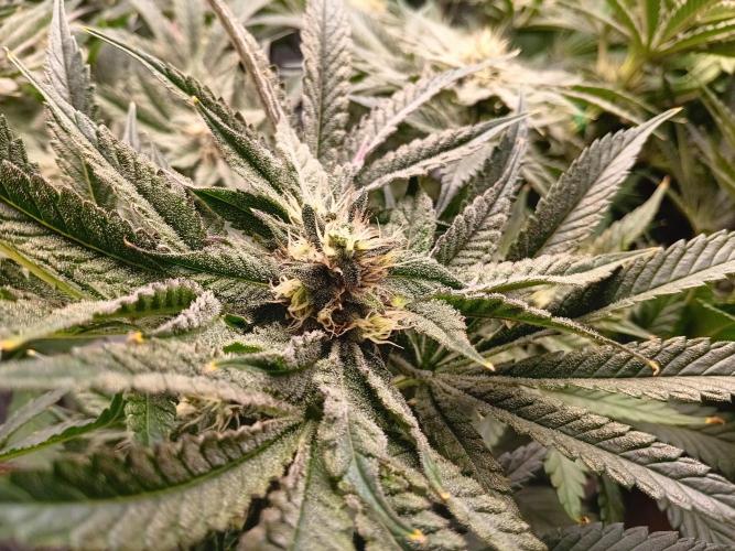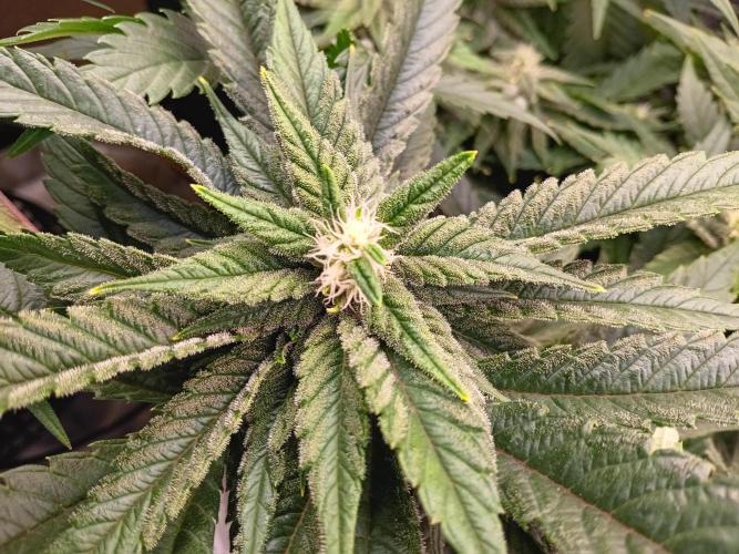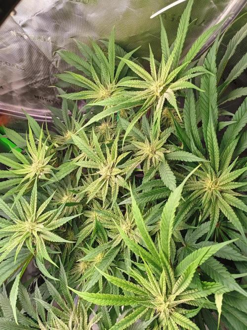 DickJones All plants are in their stretch phase. Continued Lst. Removed leaves shading flower sites or getting low light. The Skunkbreath had 2 plants in one pot. One turned out to be a dude so it was euthanised. Will keep an eye on the other.