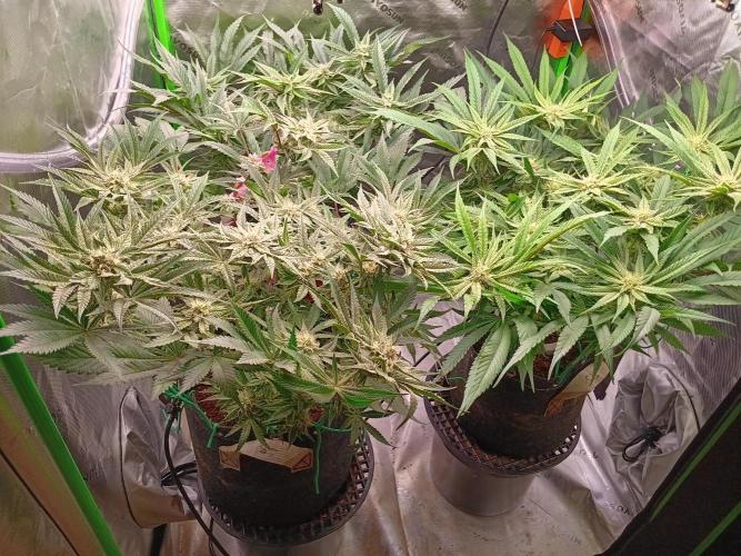 DickJones Looking good. BG and SB both show issues on their leaves. They do not show the same symptoms on their leaves though. Always interesting how with the same everything some plants show nuteient/other issues. I've learned as long as your nutrients are not to much and you are getting adequate runoff it's best to do nothing.