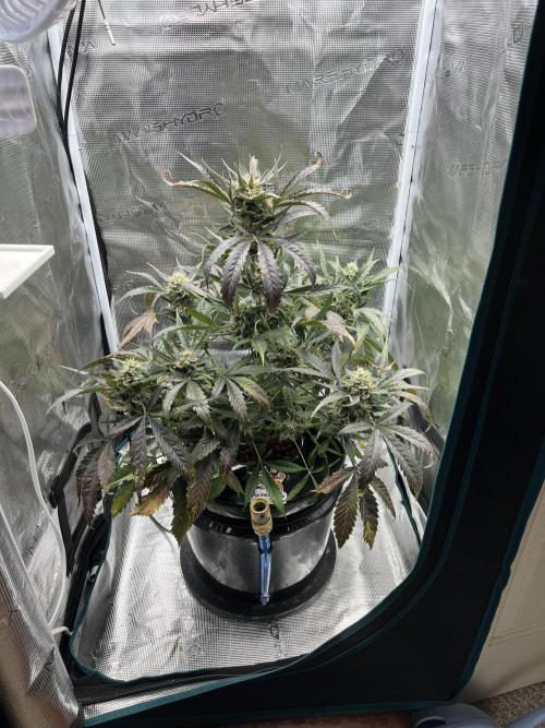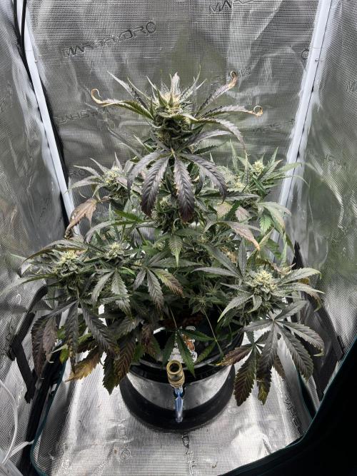 Buds continue to develop and swell as it grows toward maturity. The smell continues to intensify as well. A lot of trichomes have developed and the hairs are just starting to turn brown. Because of the plants smaller size, I don’t have to do a weekly reservoir change, it’s more like every 10 days. She just doesn’t consume as much as a larger plant would.