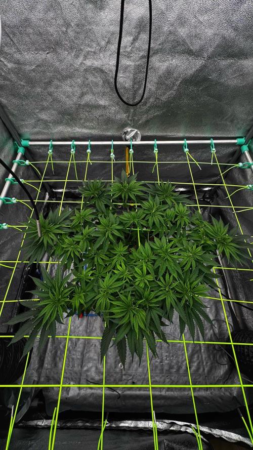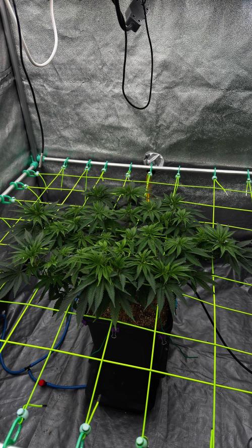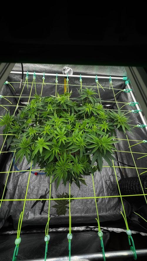 baphomet_botanica Another week went by. She reached the net and I’m eager to see how fast she will fill it. Planning to do another 2-3 weeks of veg but we’ll see. Hoping to fill most of the squares, 81 total.