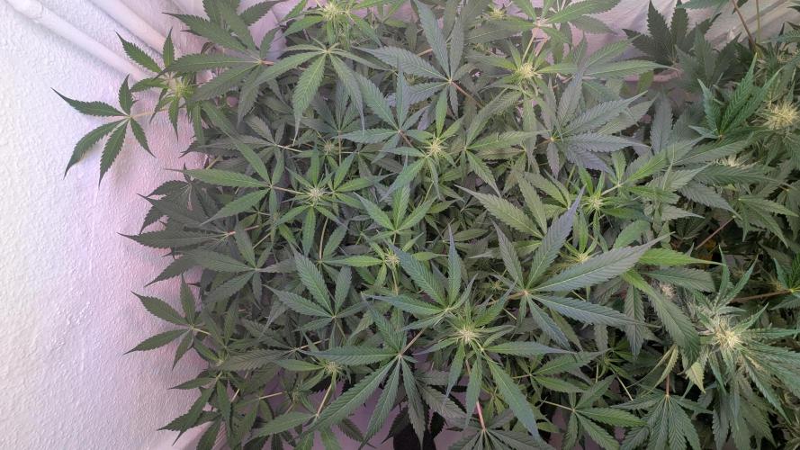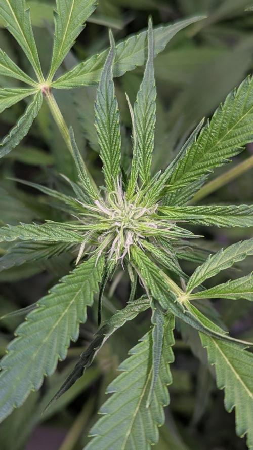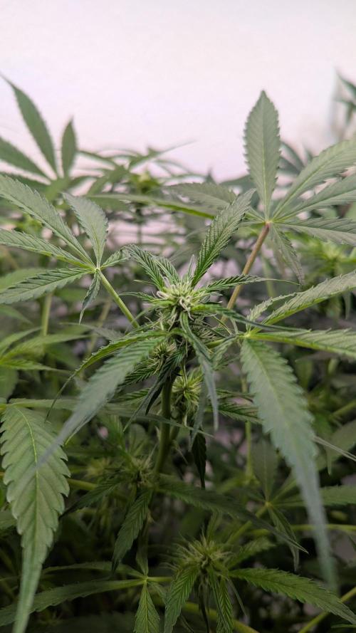 Aircoholic She's slowly waking up now, and starting to stretch. She's looking super healthy and showing lots of vital growth. Her flowers start forming, not bulking yet, but already pretty to look at. I'll do some light defoliation and lollipopping this week to give her some space and improve air circulation.