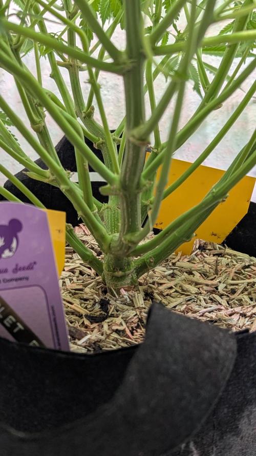 She's super difficult to do LST on, because of her slow and bushy grow - I broke two branches off by accident already, when I tried to remove LST clips on other branches nearby, so I pretty much stopped that and just let her grow however she wants to. Maybe once the stretch starts, I'm gonna be able to train her a little.