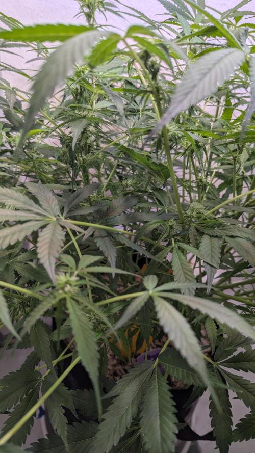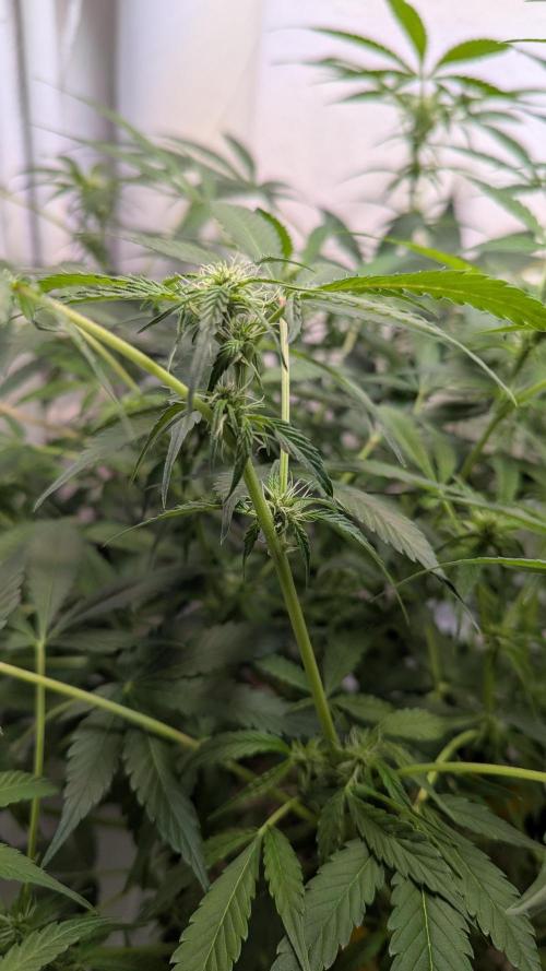 Aircoholic She's growing - slow but steady. She's in pre flower, definitely not fully in bloom yet, and the stretch is also still waiting to happen.