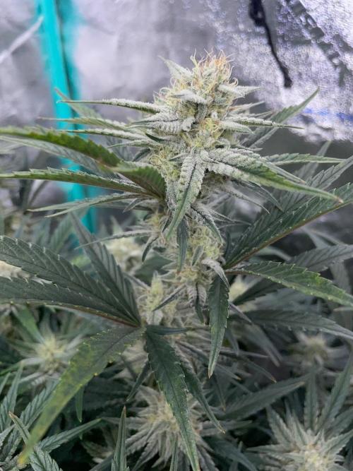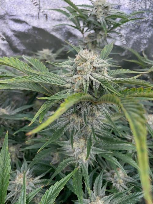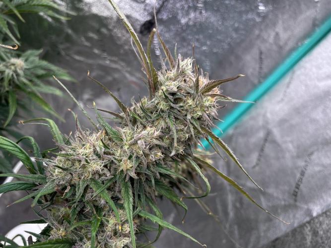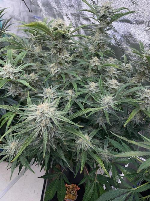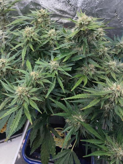 EazyRider Two SMQR's have put on some stretch to a decent size and plenty of trichomes on the sugar leaves, still very curious what Mango Isle is going to do seeing as she is so different from my first ones. CBD weed in a mini pyramid is looking pretty good biggest buds of all the plants so far! I have been removing leaves continually and opening them out but they still seem pretty crowded as I have not done much pruning. I will continue to gradually pull them apart as the leaves die off.